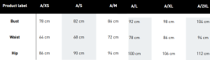 Sizing chart:
